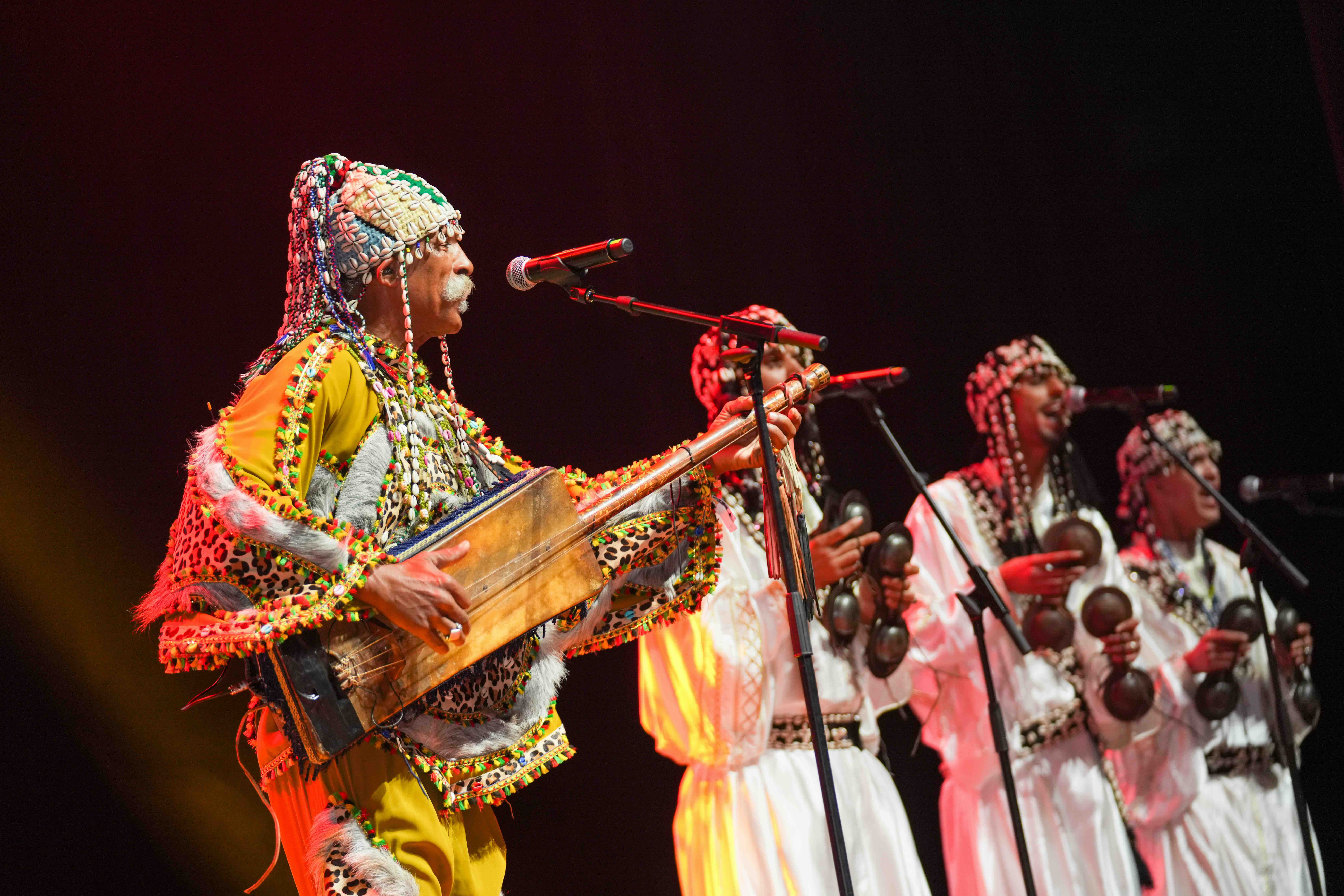Saad Tiouly uit Casablanca is een van de hoogtepunten. Normaal speelt hij met een volledige band, maar in de Salle Renaissance treedt hij op met vijf enthousiaste qraqeb-spelers (later ingewisseld door twee trommels). De hele zaal staat te swingen op zijn gnawamuziek. Opvallend is dat de muziek eigenlijk nooit echt stopt: na een versnelling transponeert hij naar een andere noot en gaat het gewoon verder in een langzamer ritme. Zijn enorme bos haar en brede glimlach geven iedereen een goed gevoel.