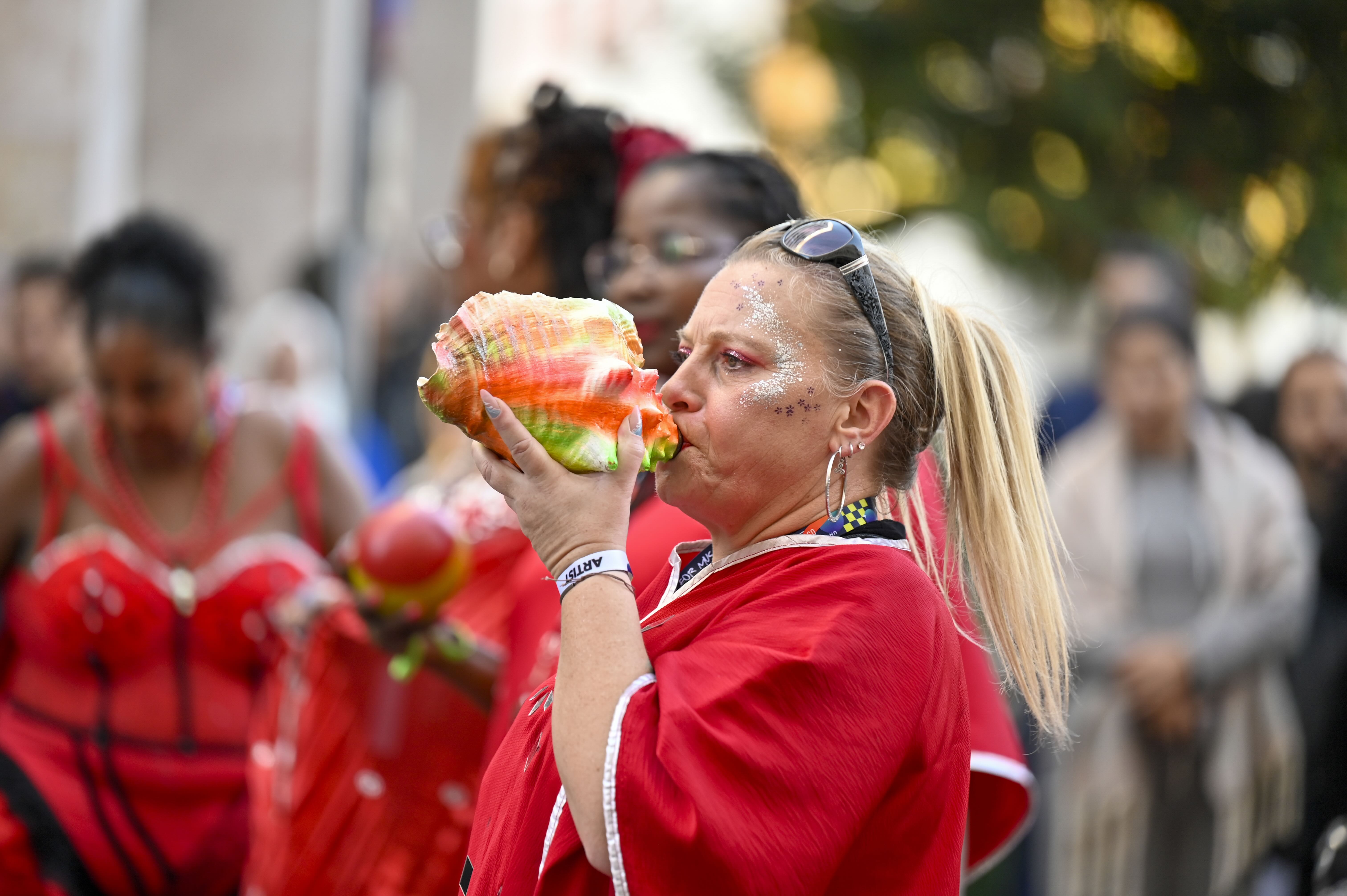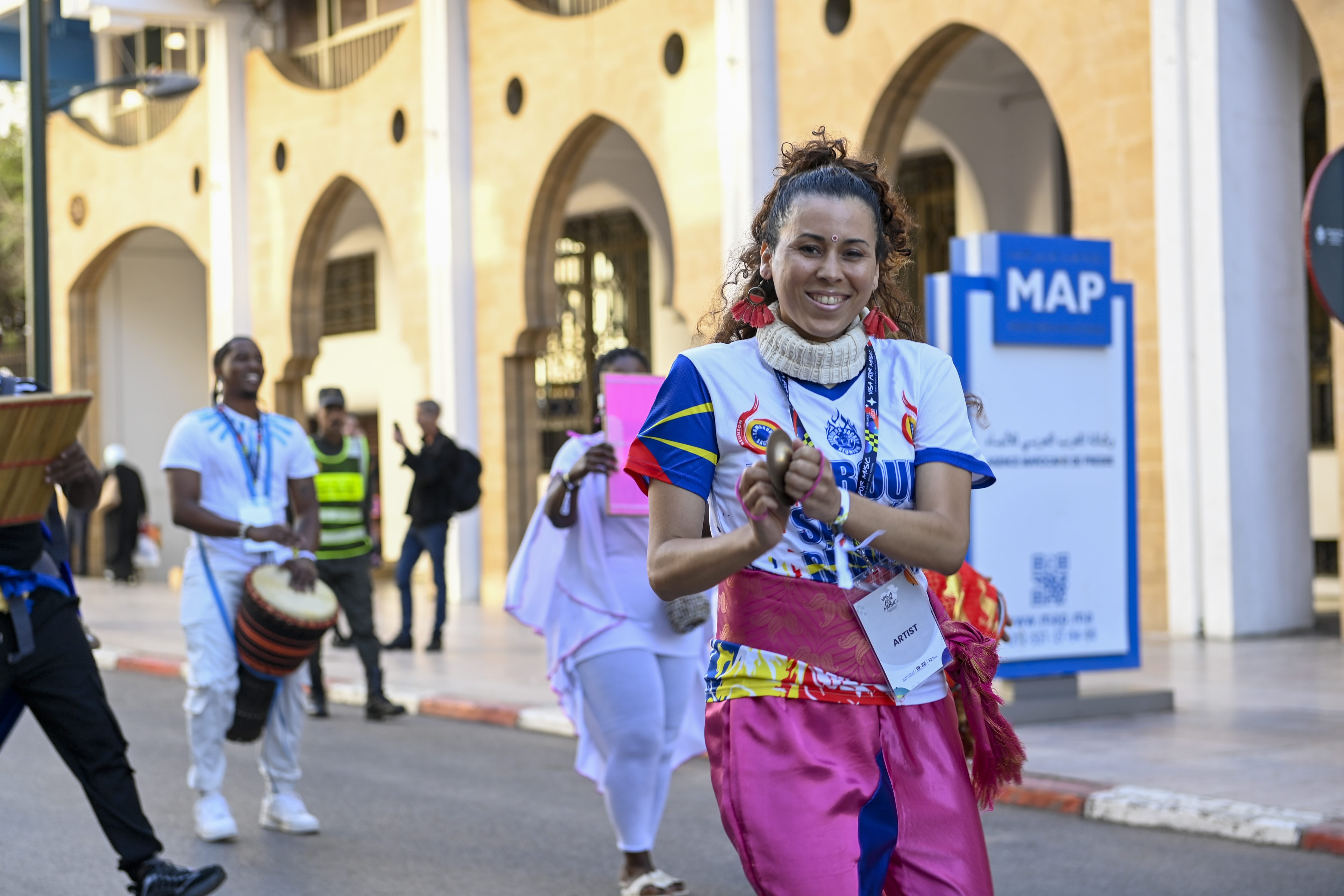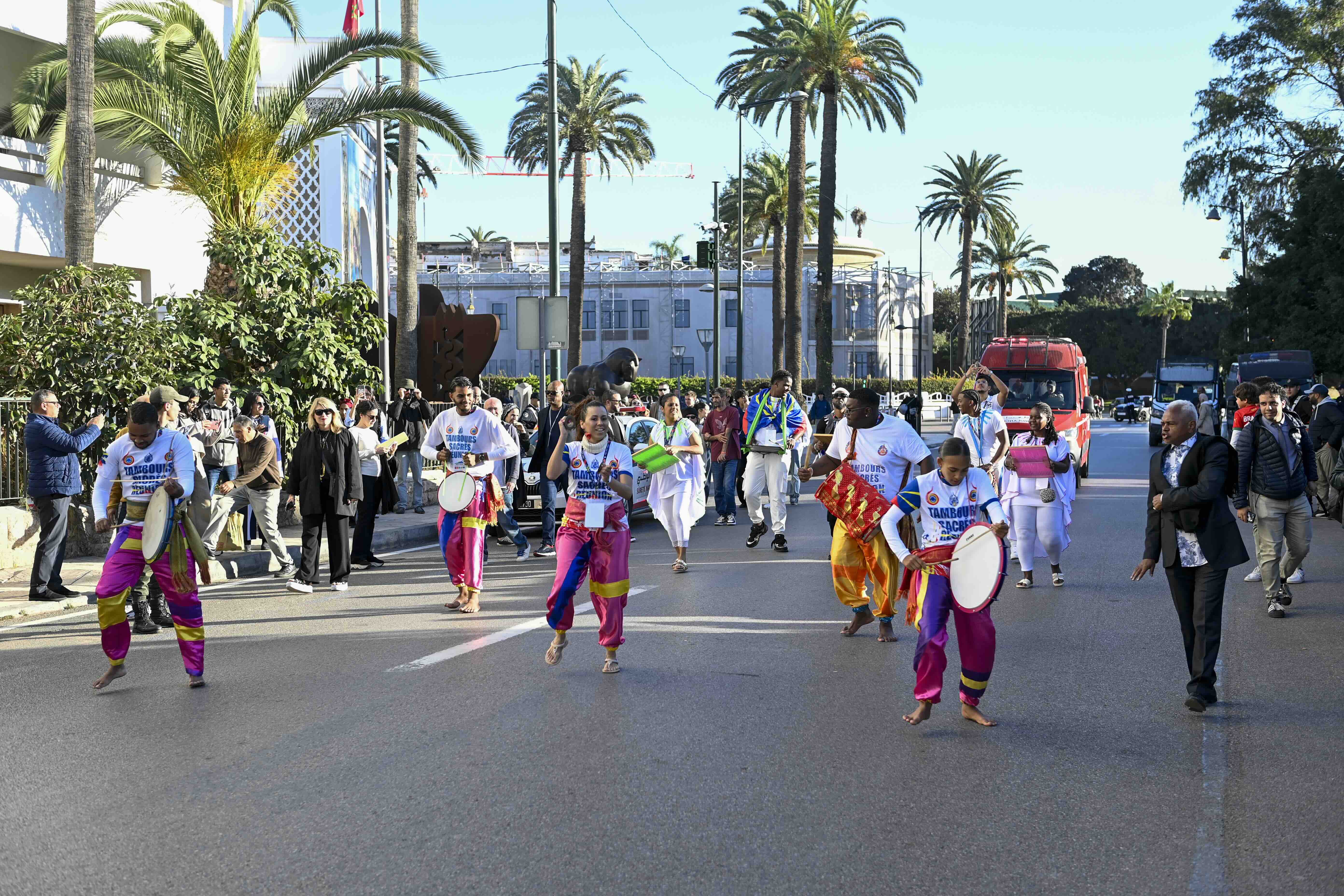 Elke middag rouleren op het plein voor Théâtre Mohammed V enkele groepen met zang, dans en natuurlijk veel percussie. Hier mag het Ballet Royal Djoliba wél groot uitpakken met een epische voorstelling waarin vooral veel strijd geleverd wordt. Onversneden traditioneel is het zeker niet helemaal, want sommige dansmoves zijn overduidelijk aan de hiphop ontleend. De groepen trekken ook veel bekijks van voorbijgangers. Jammer alleen dat de plek niet openbaar is, waardoor mensen uit de stad niet spontaan kunnen aansluiten en meegenieten. Wat opvalt is dat veel van de grotere gezelschappen, zoals de Tambours Sacrés en het carnavaleske Ethnick uit Frankrijk (foto hierboven) afkomstig zijn. Zowel La Réunion als Martinique zijn immers overzeese Franse departementen. Zonder overheidssteun vormen bij zo’n omvang alleen al de reiskosten een bijna onoverkomelijke barrière.