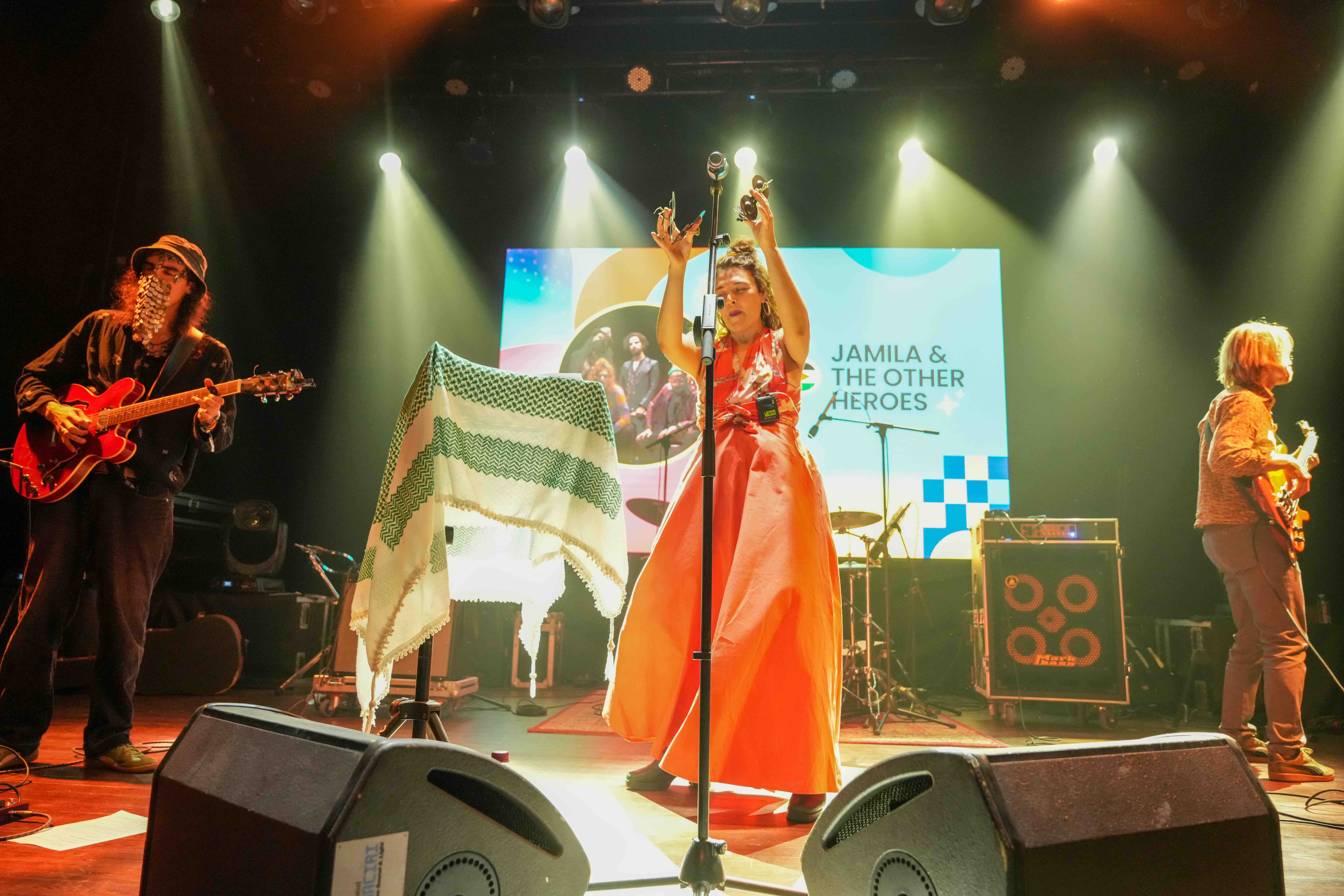 Jamila & The Other Heroes uit Berlijn volgen daarna in Salle Bahnini. De politieke boodschap van de Duits-Palestijnse Jamila in zake Palestina is krachtig en ontroerend. Ze laat een video zien van haar held Juliano Mer-Khamis, ter nagedachtenis aan hem. De muziek — psychedelische desert-rock — klinkt op zich goed, maar de boodschap komt minder sterk over wanneer Jamila zingt, mede door haar lichte, dunne stem.