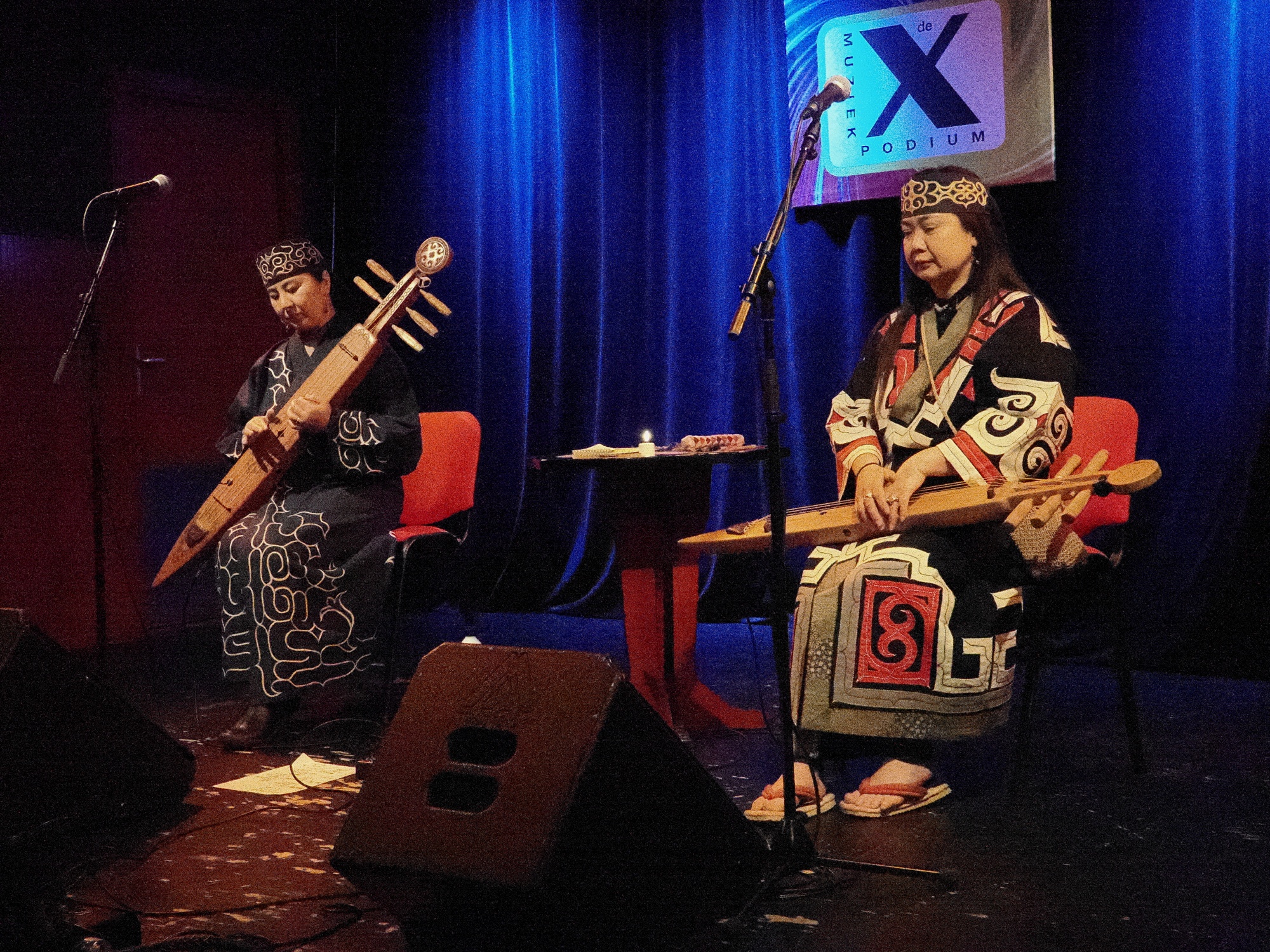 De muziek van de Ainu, de inheemse bewoners van het eiland Hokkaido in het noorden van Japan, was nog nooit in Nederland te horen. Tot gisteravond dan, toen twee Ainuvrouwen het podium van De X in Leiden betraden om het nieuwsgierige publiek anderhalf uur lang mee te nemen op een virtuele rondreis door hun rijke muzikale traditie.