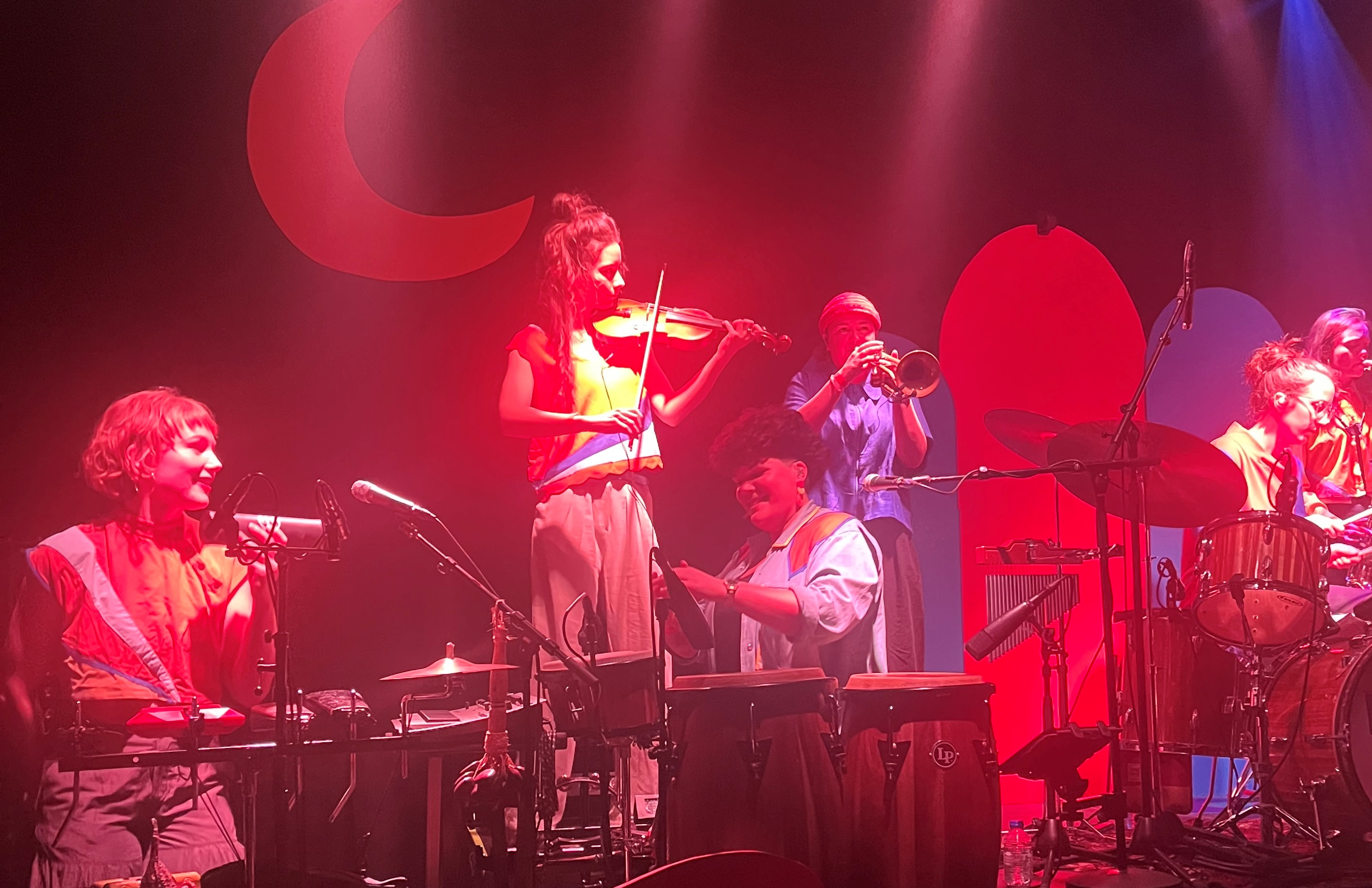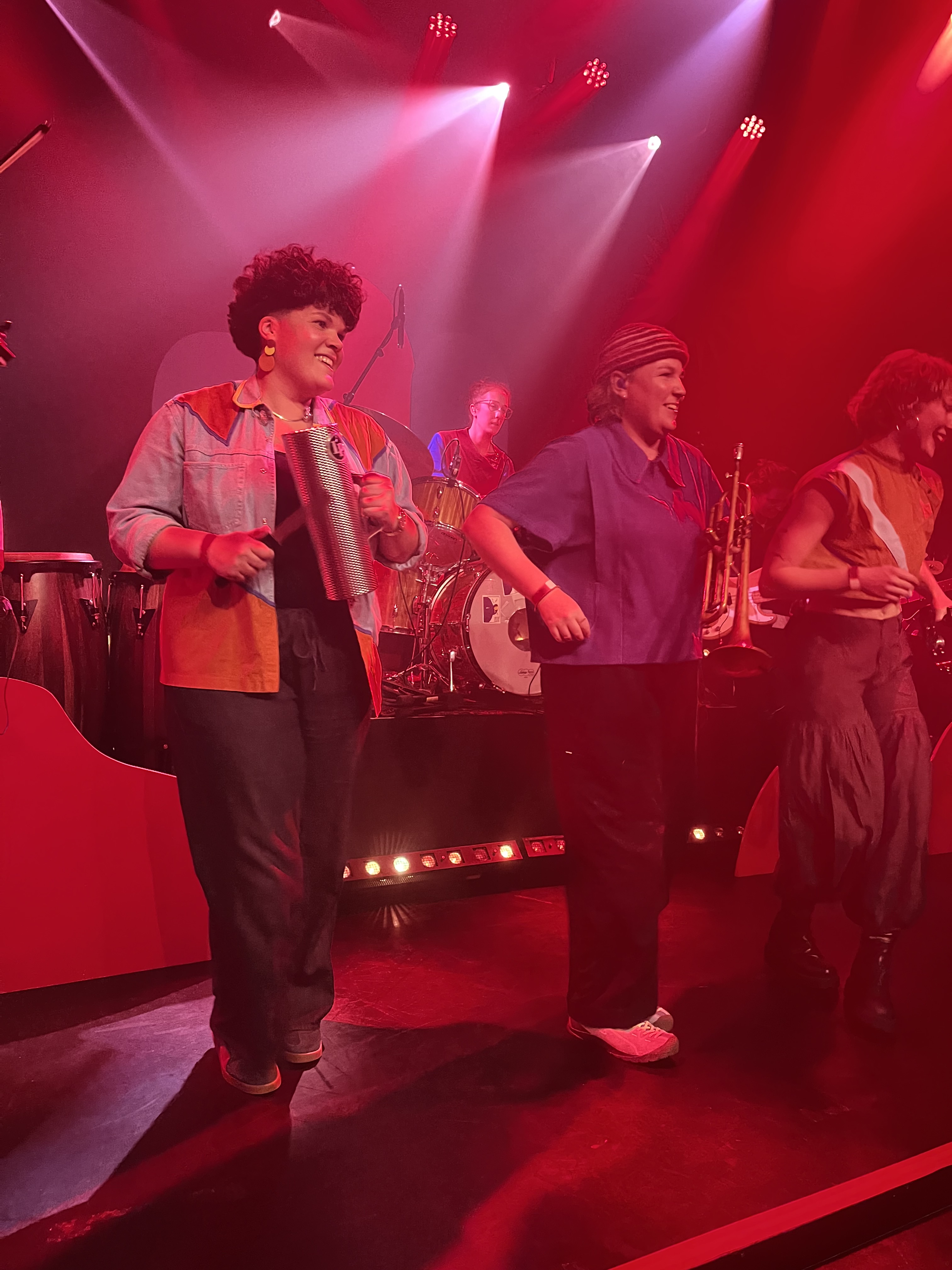 De uit negen vrouwen bestaande band Parra.Dice zette in De Nobel in Leiden een puik optreden neer. Alle tracks van het album 'Turn the Dice' passeerden de revue, plus nog een paar nieuwe. Fenne en Julia Sabaté wisselden elkaar af als vocaliste. Voor op het podium stonden violiste Nina Zuure, de saxofonisten Mathilde van der Meij en Fleur Peereboom en trompettiste Julia Koenen. En achter hen Noah Stakenborg op gitaar en Julia Kooreman op basgitaar, en verder de percussionisten Sophie Anglionin – die vooral conga’s speelde – en Nelleke Grimberg, en drummer Agnes Valmaggia. De muziek van Parra.Dice bleek live ook zeer sterk en zeer dansbaar en dat was goed te merken aan het enthousiasme van aanwezige publiek.