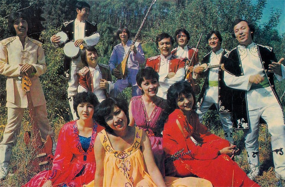 De groeiende diaspora vroeg om faciliteiten voor openbare culturele uitingen. In lijn met het nationale beleid van de Sovjet-Communistische Partij werd het idee om een Oeigoers Nationaal Theater te bouwen gerealiseerd in Almaty, de hoofdstad van Kazachstan. In 1974 werd daar de muziekgroep (destijds aangeduid met de term 'vocaal-instrumentaal ensemble') Yashlik gevormd. Zoals gebruikelijk in die tijd stonden professionele groepen onder toezicht van de autoriteiten en waren ze onderworpen aan strikte regels met betrekking tot repertoire en arrangementen. De band diende een belangrijk doel: jongeren entertainen met muziek die getuigde van vakmanschap en ook in overeenstemming was met de partijlijn.